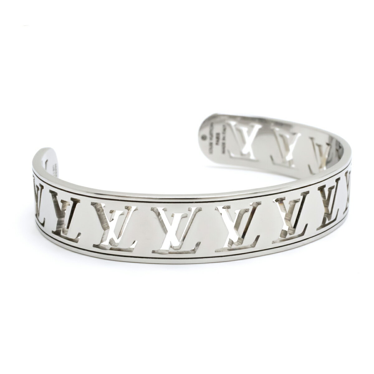 【ジュエリー】LOUIS VUITTON ルイ ヴィトン ジョンク マルチ LV オープンバングル ブレスレット ロゴ 型抜き Mサイズ メタル シルバーカラー M63651 【中古】